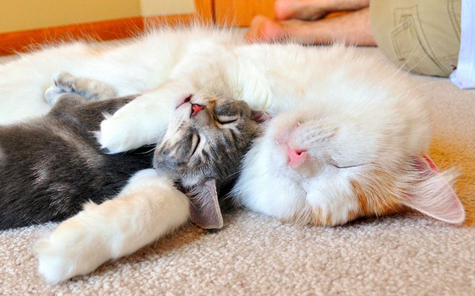 Lucy, a little rescue, came to our home about a week ago. Our most fluffy cat Jackie took an interest in her early on. It didn't take long for the two to bond. A week later, I saw this happening! :) I was so overjoyed that I had to take pictures to capture these wonderful moments.