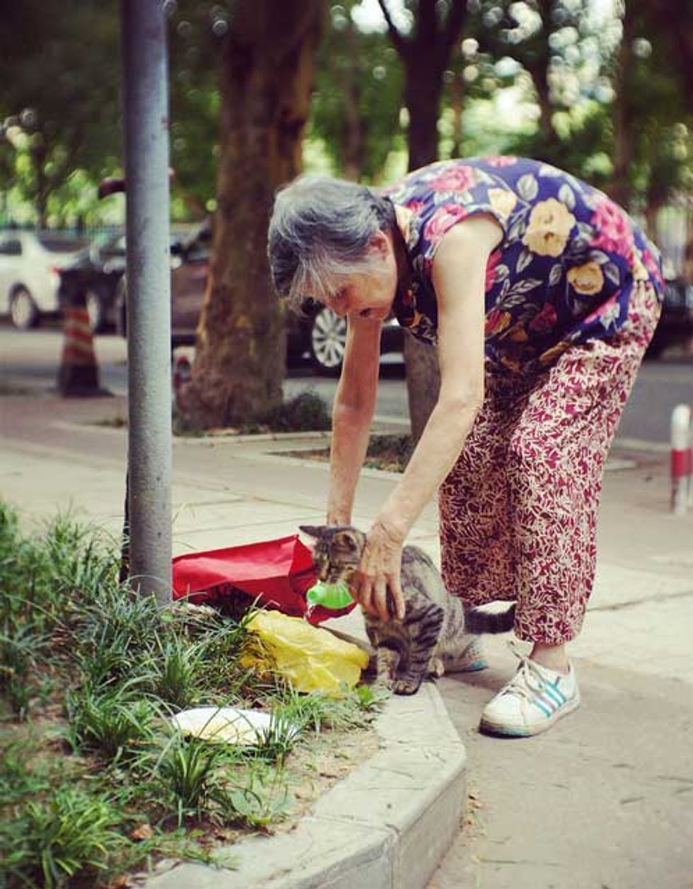 An elderly lady from Wuhan, China walks with a cane everyday to a school to feed a feral cat that she befriended one day. Despite her age and health, she's never missed a single day of visit to her favorite feline friend. The love the kitty has for her human friend is reciprocal. The little tabby waits at the same spot anticipating for her provider everyday. Though the elderly woman can't move around very easily and her hair has turned grey, seeing the kitty well and fed is worth so much more to her. (Poco.cn)