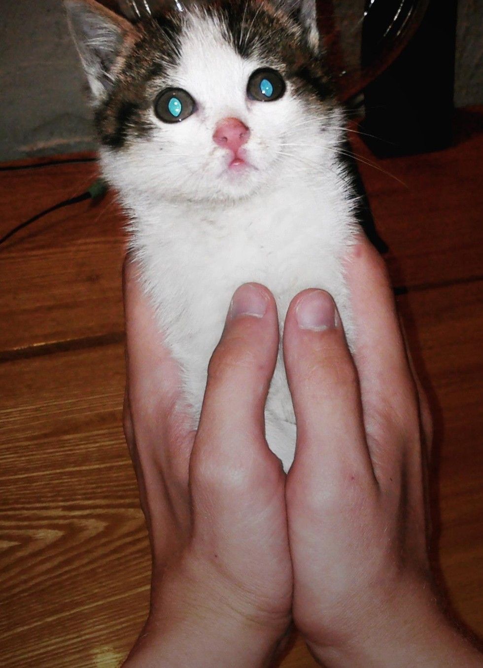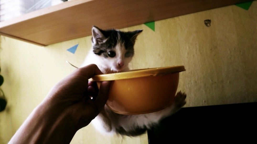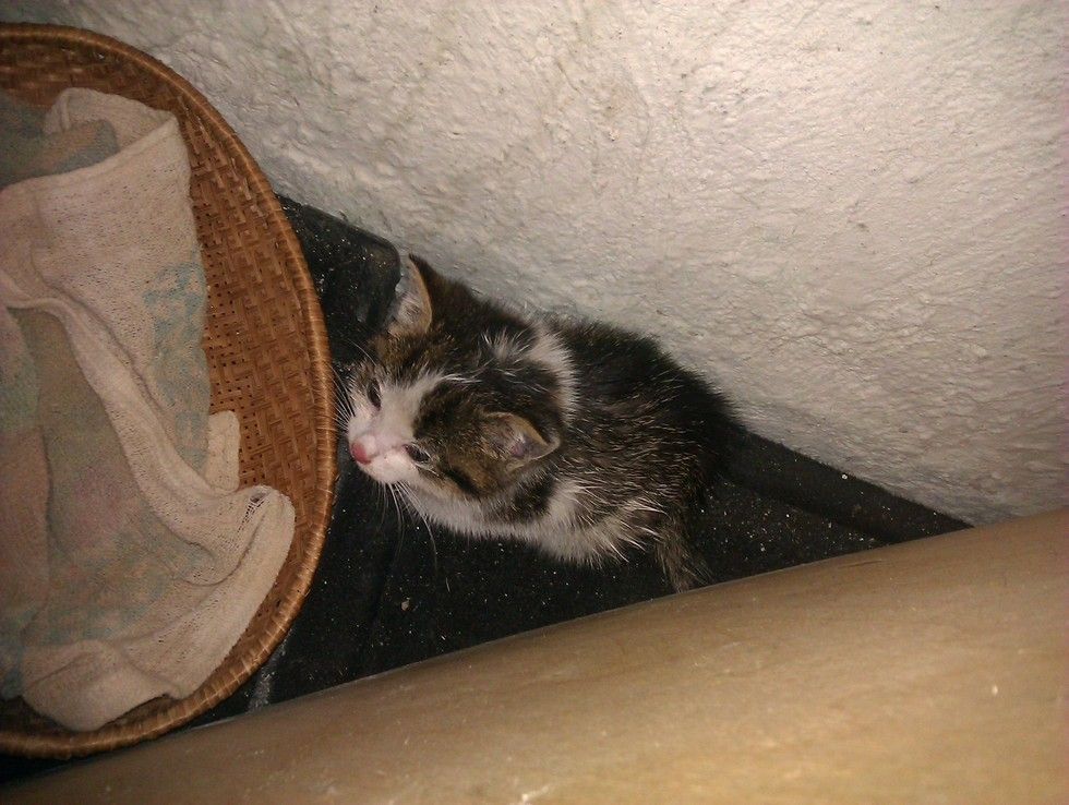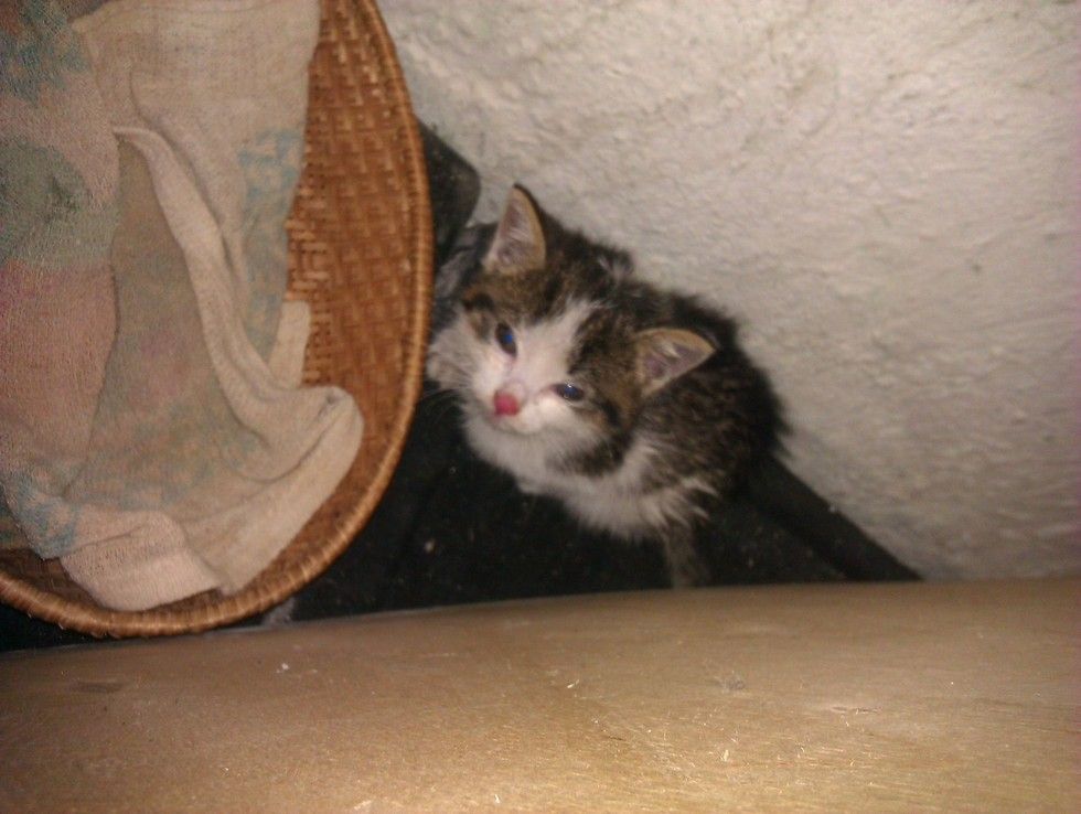 The kitten was left behind at a very young age. The cat mother was nowhere to be found.