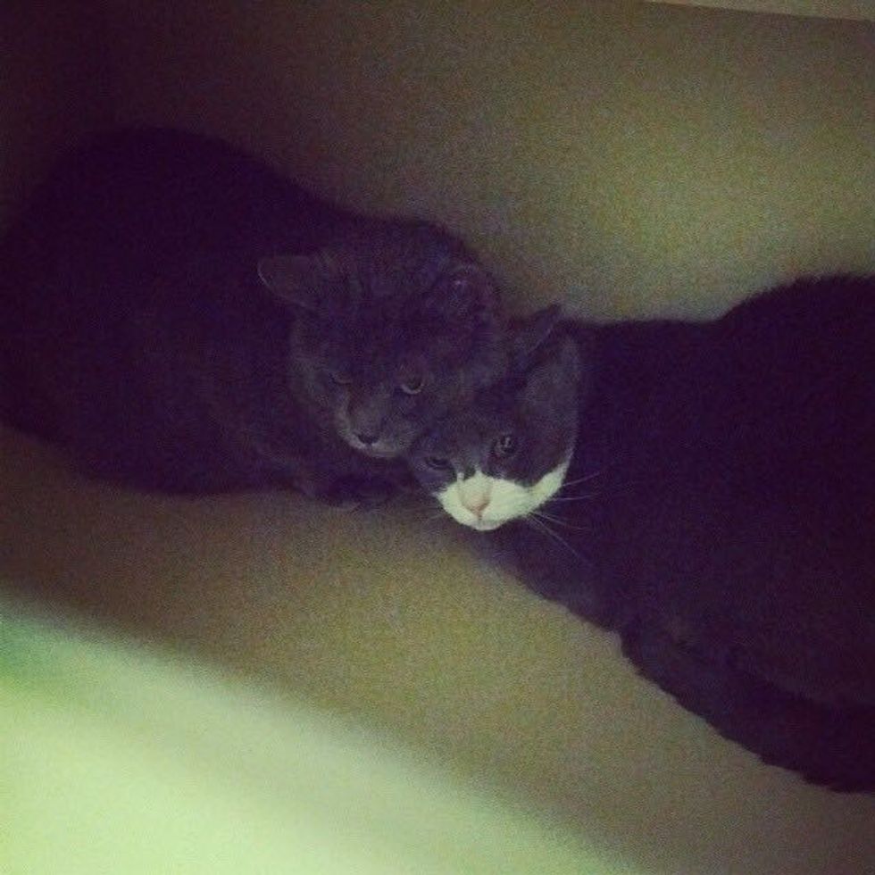 "I adopted him with another scaredy cat, and they bonded rather quickly: hiding from me in the cupboards, squishing together in corners, and regarding me as their potentially abusive captor."