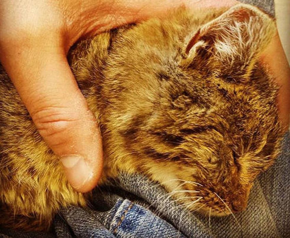 "As I got out of the car, I could hear him meowing so loudly and pitifully and his little heart was beating so fast," she added.