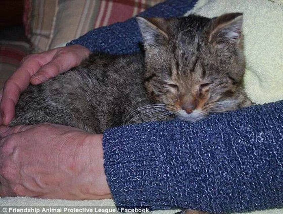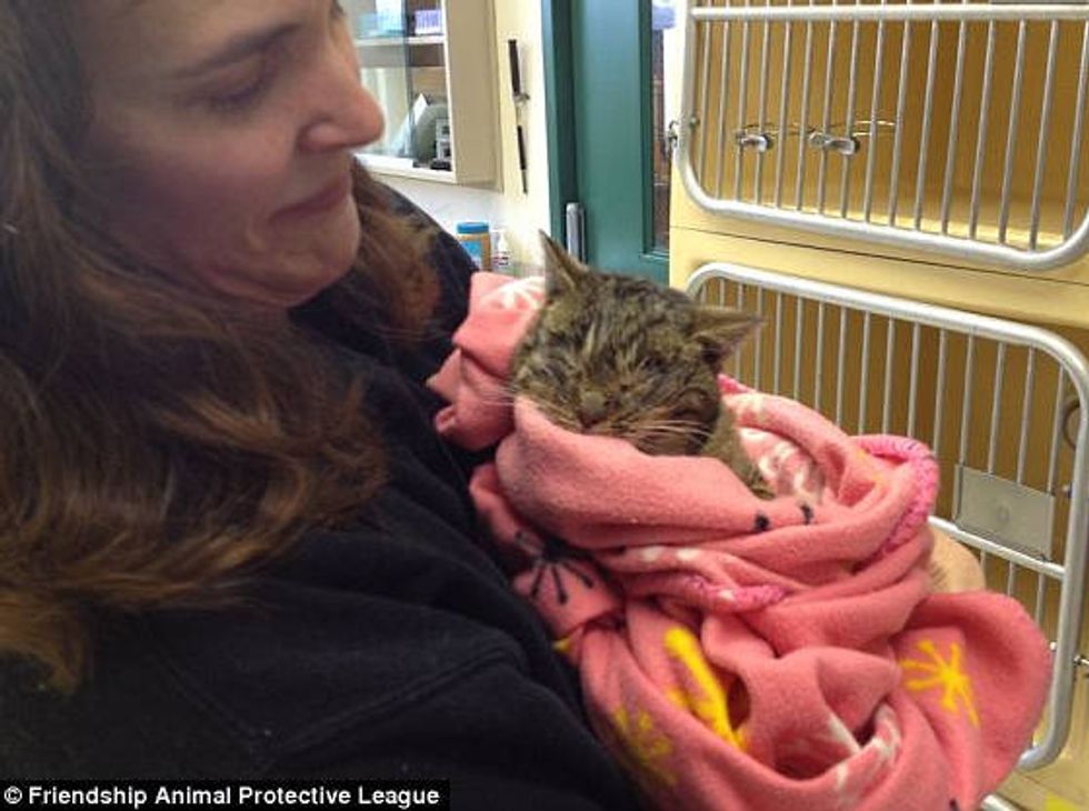 Dara immediately picked up the kitten and took him to the Friendship Animal Protective League, where workers quickly gathered blankets and supplies to warm up the kitten.