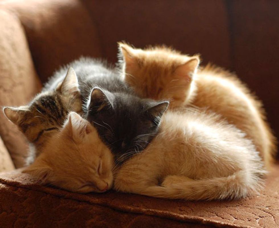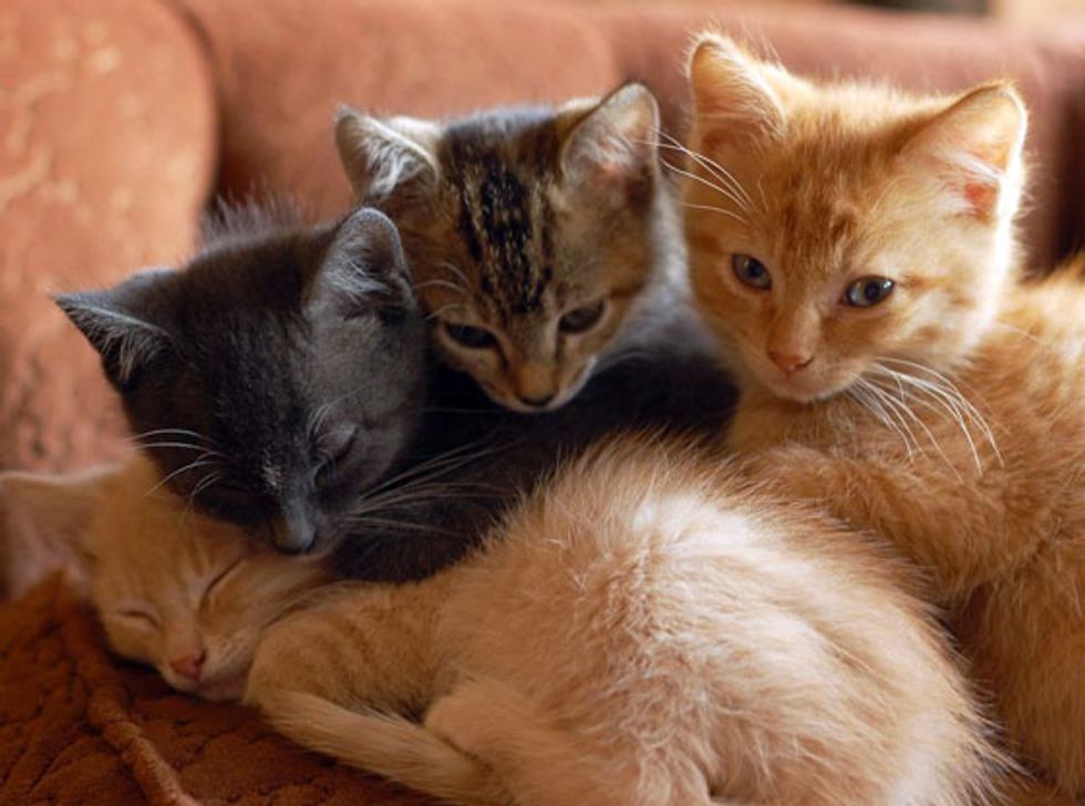 Lambert, Truman, Fiona and Irving snuggle up in a purr pile