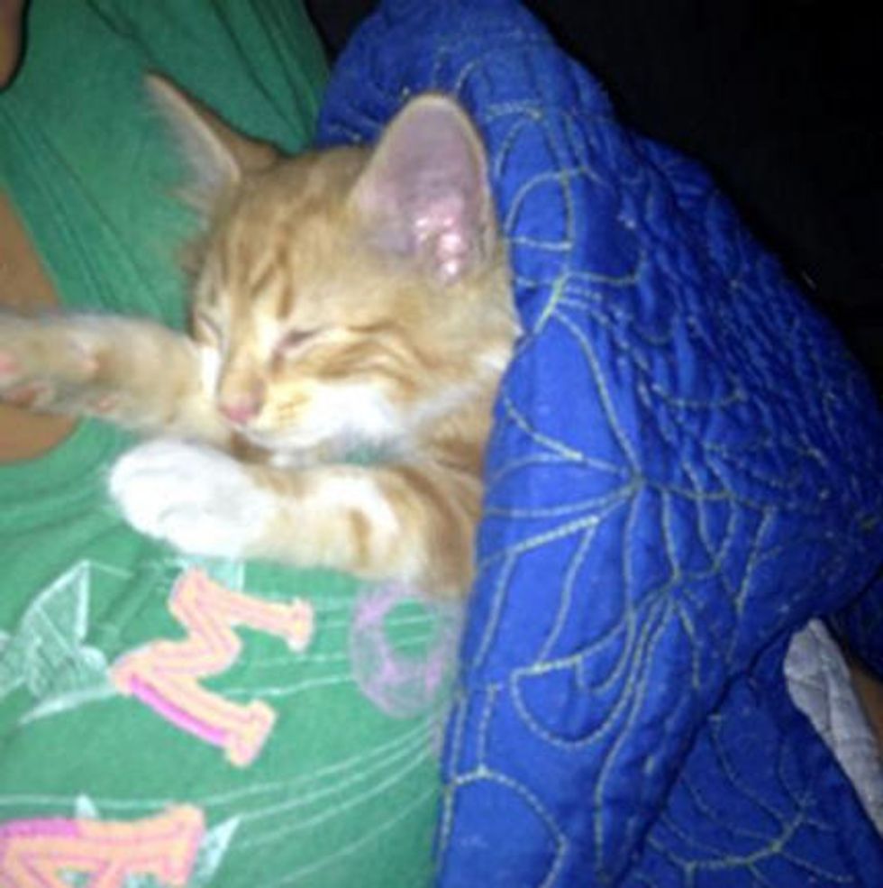 Paul Clark, a motorcycle cop spotted a tiny yellow kitten running across the street and climbing up the back of an SUV that was pulled over behind a truck.