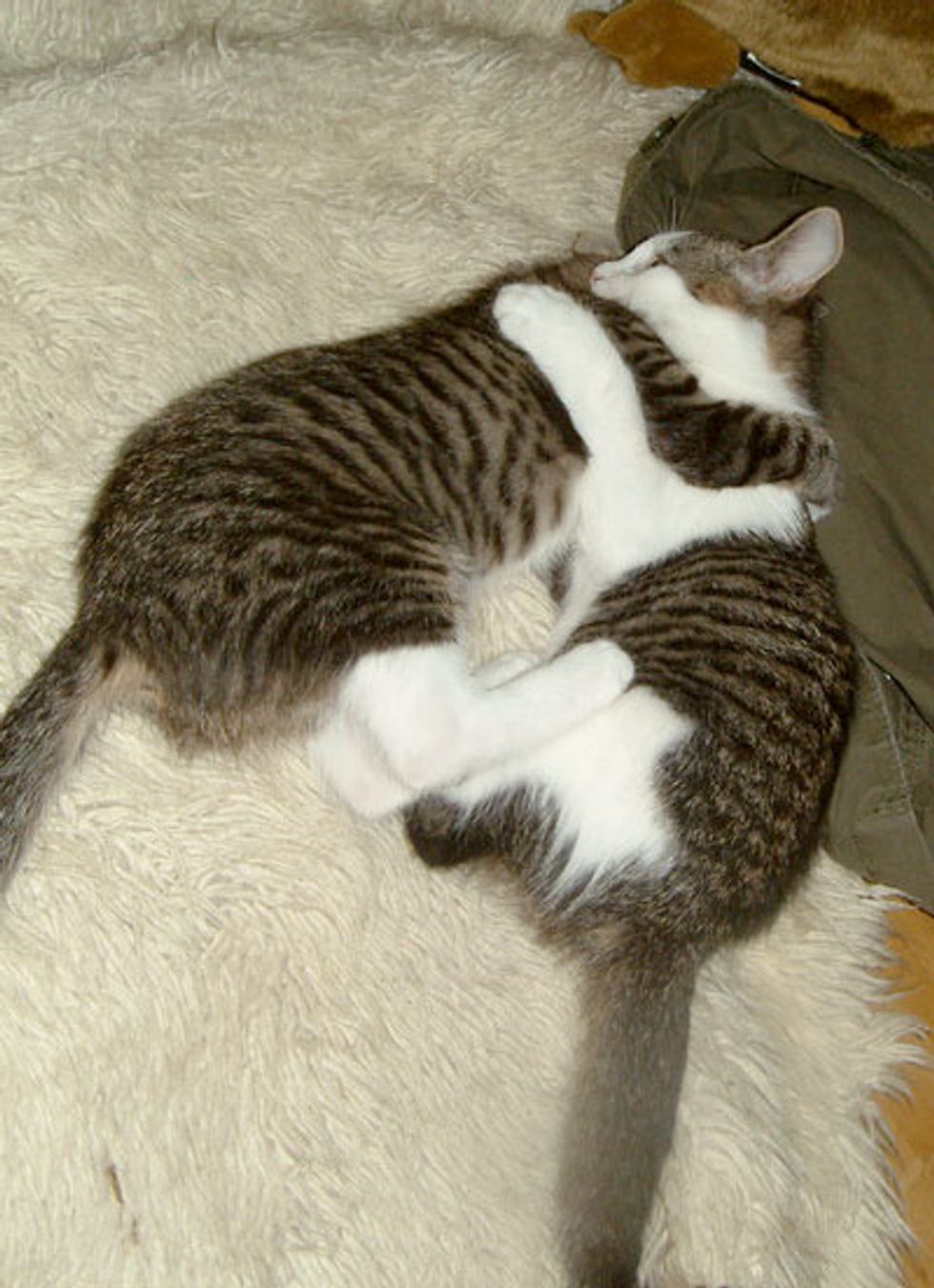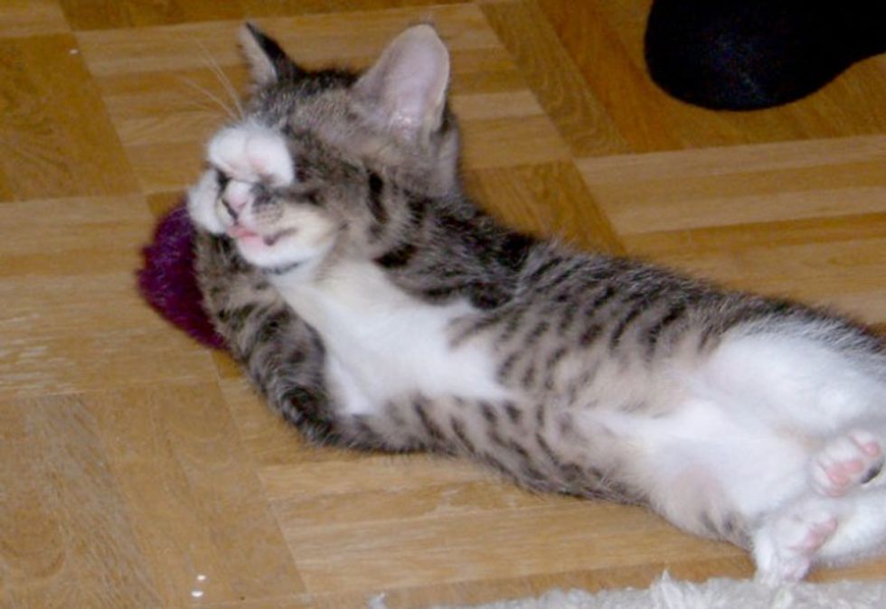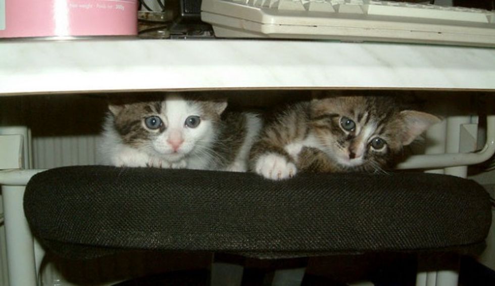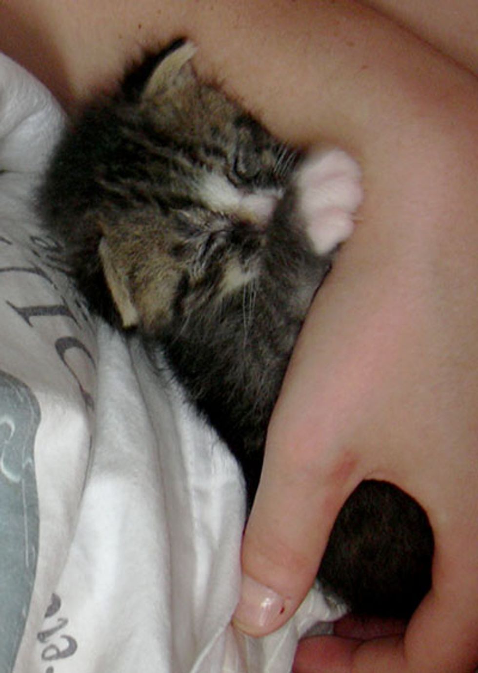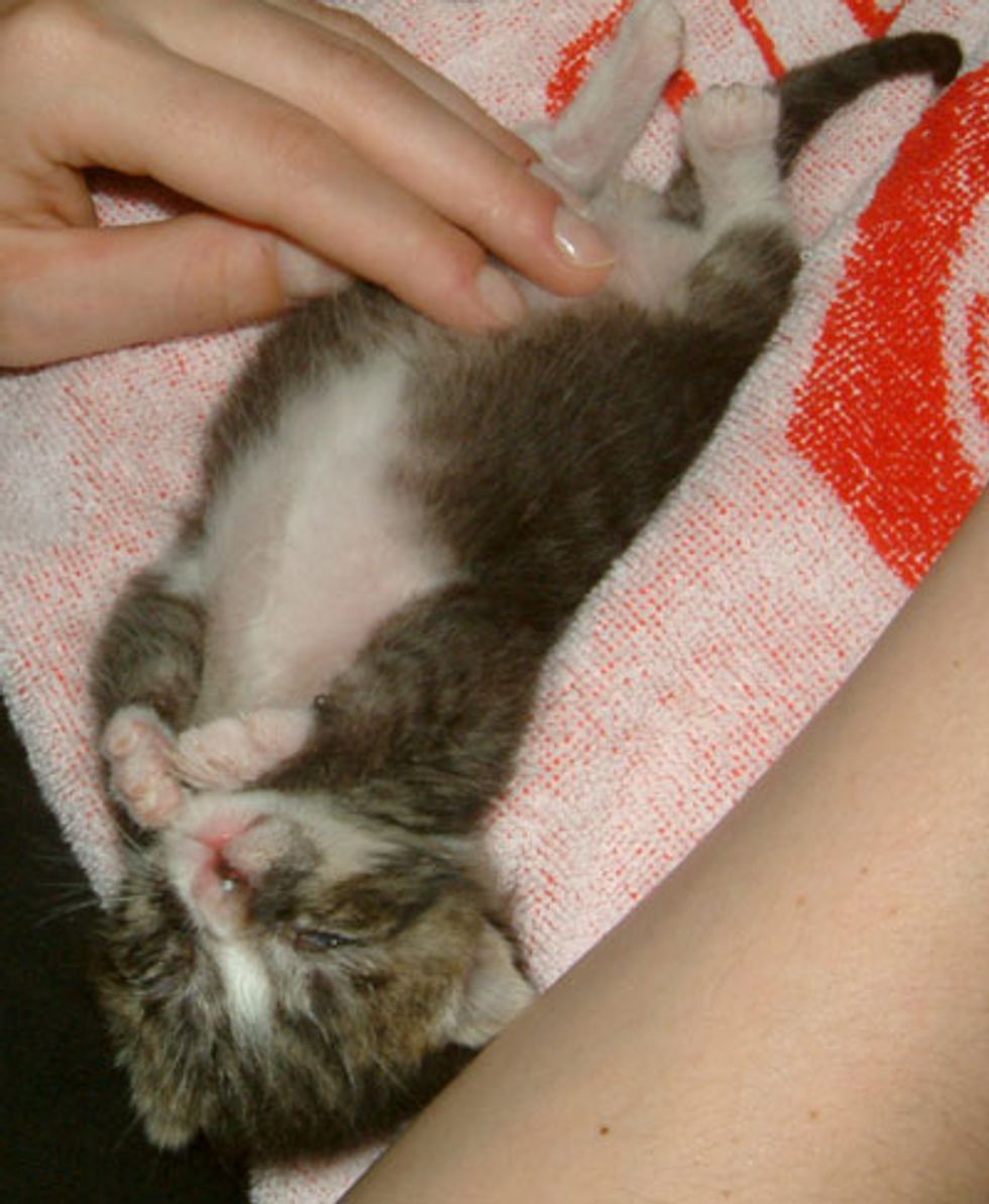 Tim Bartel and his girl friend took in a family of three after his girlfriend found the mama who needed medical emergency. The kittens are Gary and Kasimir.