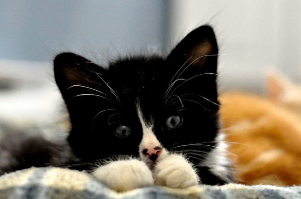 This is George one of the many foster kittens that Jill Hudgins from Frederiction SPCA (Canada) is caring for. Those little mittens match the color of his nose perfectly. What an adorable tuxedo boy.
