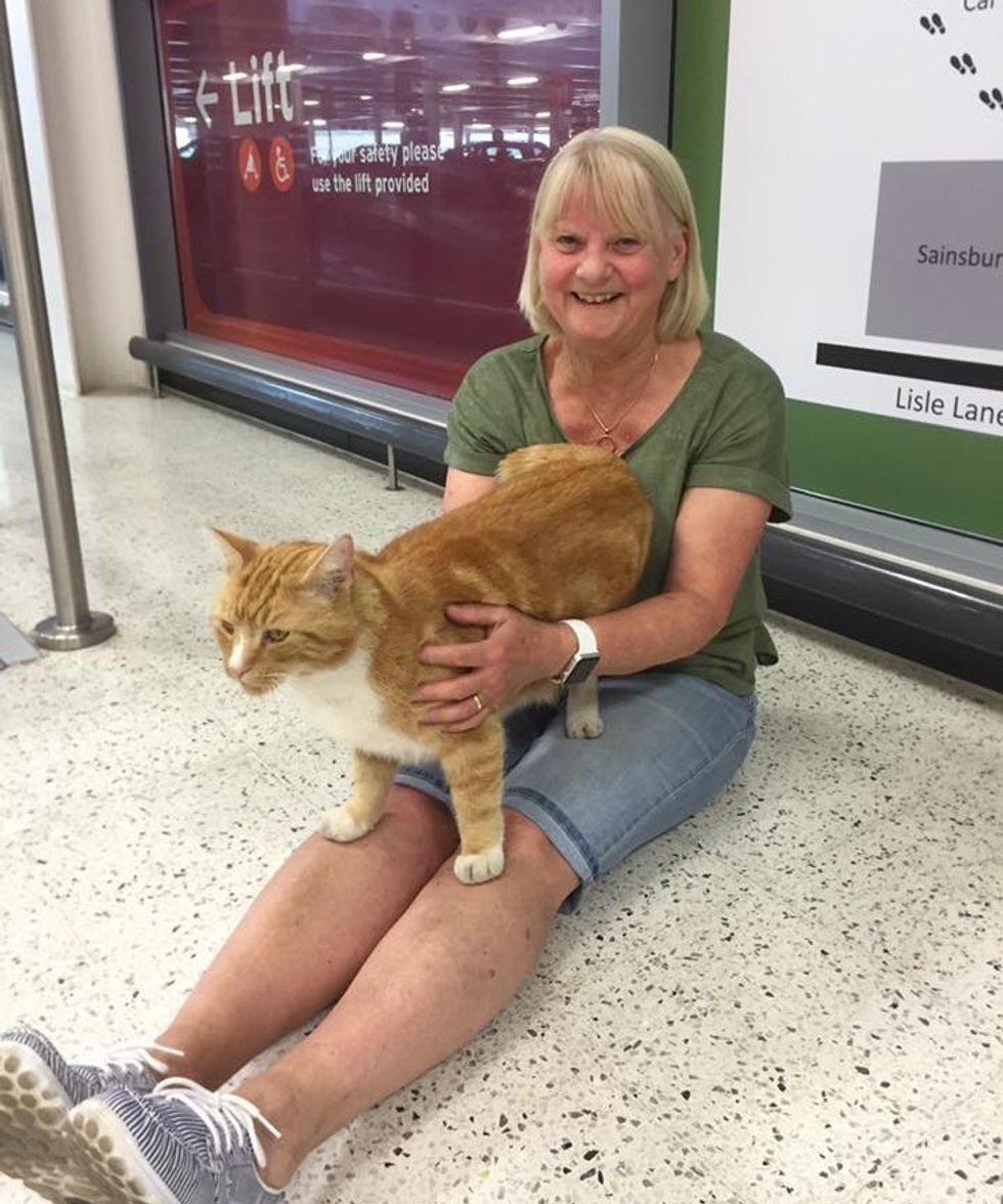 The 9-year-old ginger cat has been visiting the supermarket on a daily basis for years, and it's like his second home. The red couch in the Virgin Travel in-store concession has always been his favorite spot to lounge. He's been dubbed Mr. Sainsbury's by the people there.