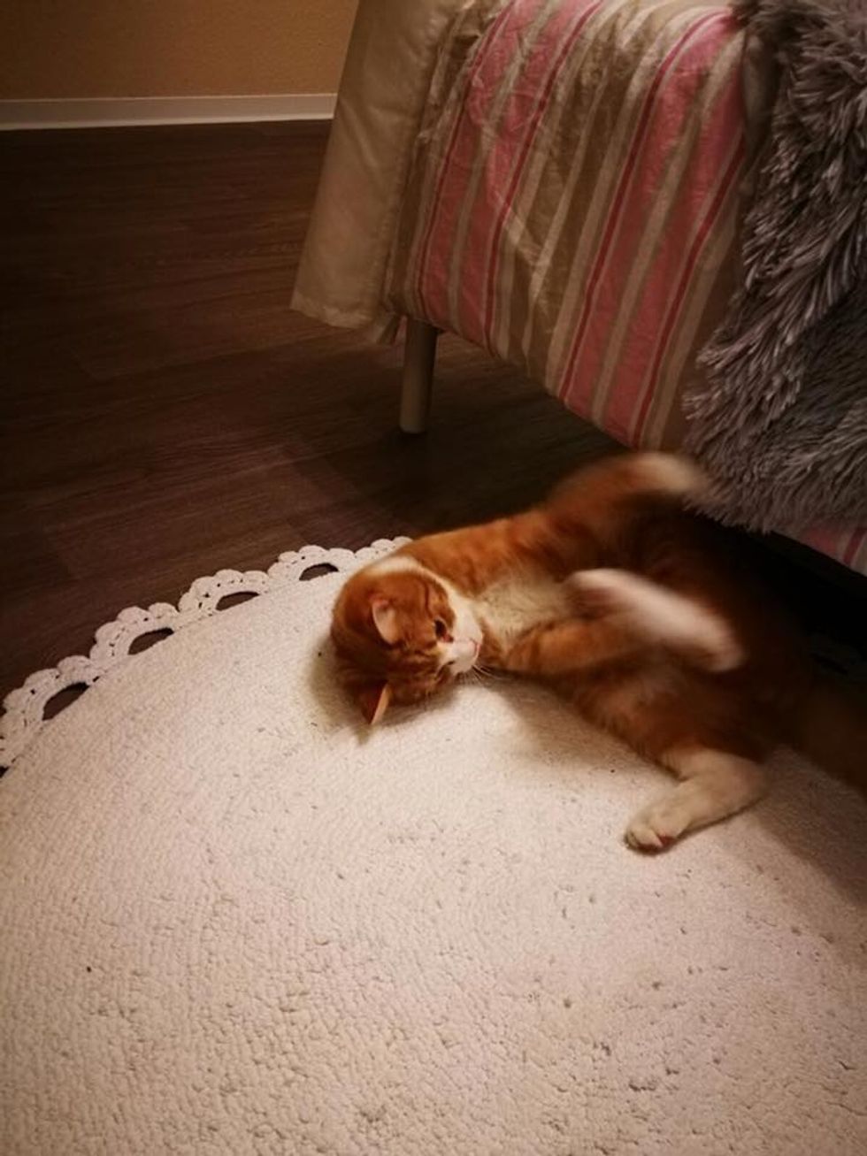 The adventurous kitty was making his way to Kirchheim taking on two seats, snoozing and purring soundly.