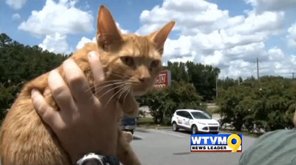 A tiny 6 months old ginger kitten was trapped in a bucket of paint for hours in a dumpster near the Family Dollar in Phenix City.