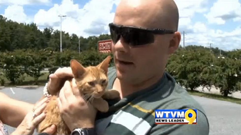 Mary Musselwhite, one of the employees, heard the kitten crying when she was out throwing away trash. "So I looked down and I said, please God, don't let it be in this bucket. And there it was. I popped the top on the bucket and its little painted face just meowed at me. It had so much paint on it, your heart just couldn't help but fall. Its little eyes were just covered with paint…" she said to WTVM.