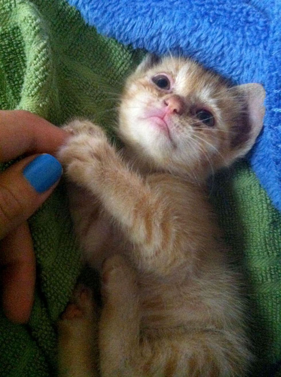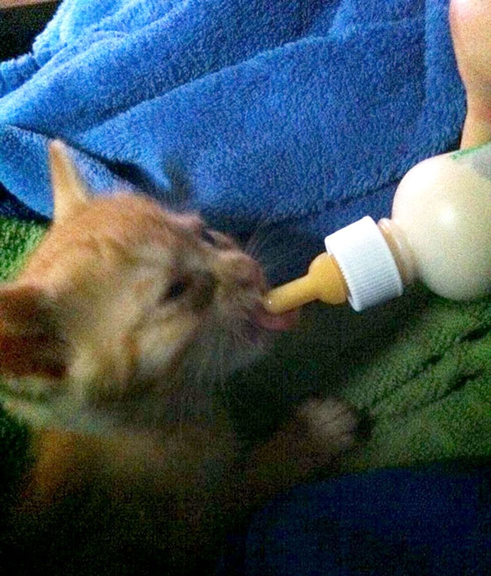 This tiny ginger was found in an old tree log, shaking like a leaf. "I was exploring the woods behind my apartment, and looked over and spotted this little girl.... My first thought was to save it. My second thought was to take a pic and message my husband to prepare for kitty by the time I got back," said ynez via reddit.