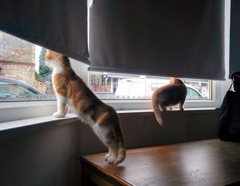 Loving all the space and enjoying being able to stretch their legs. They are totally riveted by what they see through the windows!