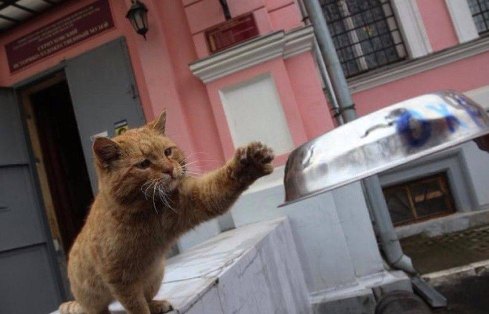 A ginger stray started hanging around the Serpukhov Museum of History and Art in Serpukhov, Russia back in 2014. Soon he made himself a doorman and started greeting and meeting guests coming into the museum.
