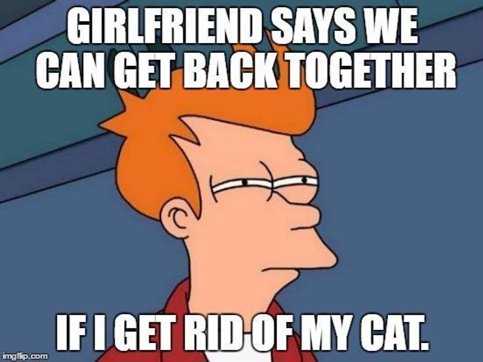 A man got an ultimatum from his girlfriend that they could get back together if he would "get rid of" his cat.