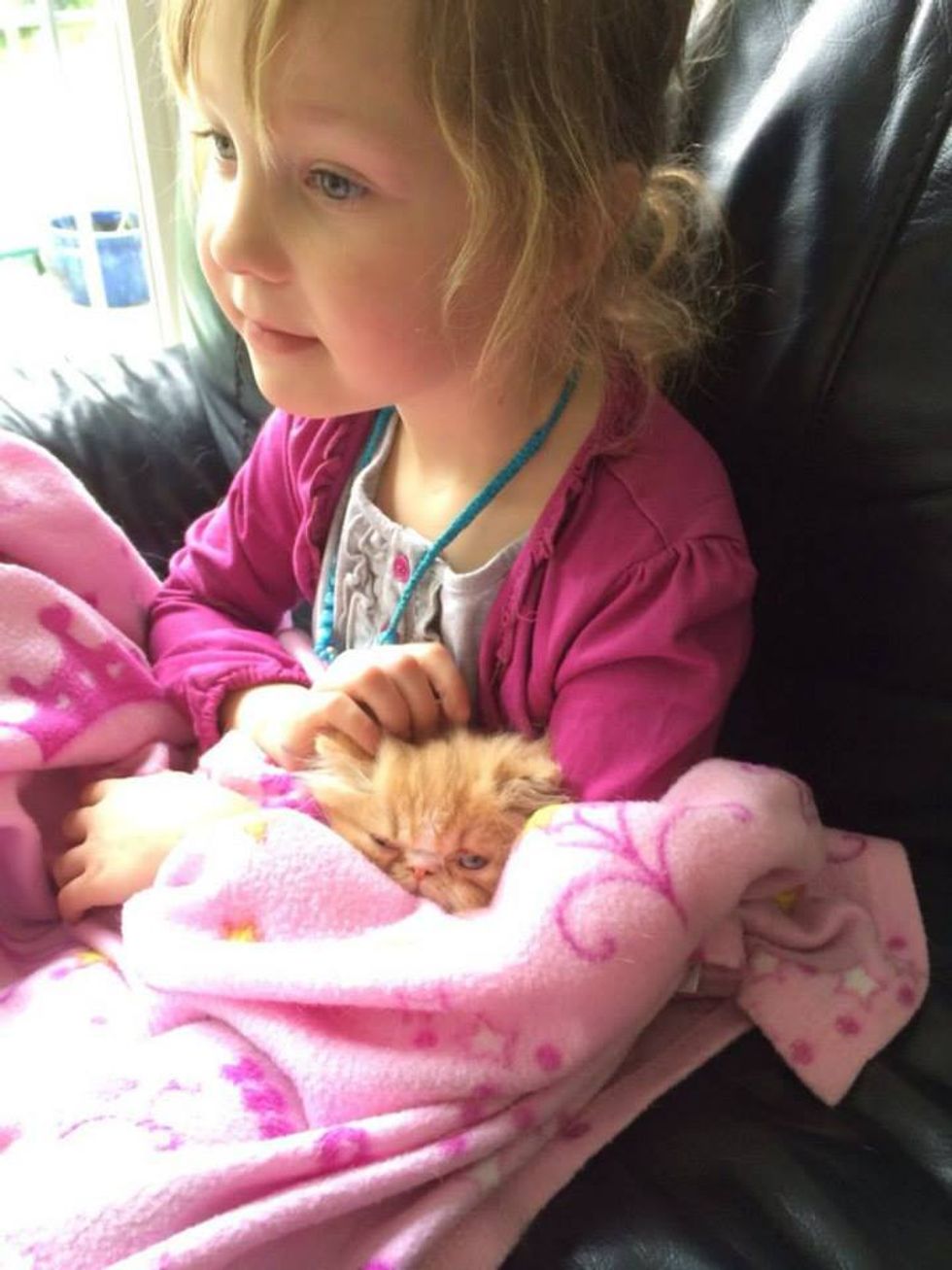 A girl's love and care for her special needs cat has sealed the hole in his heart.