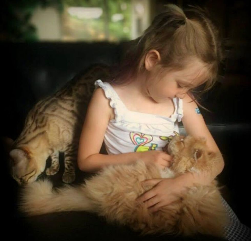 Max adores his little human sister, and he purrs up a storm when he's in her arms.