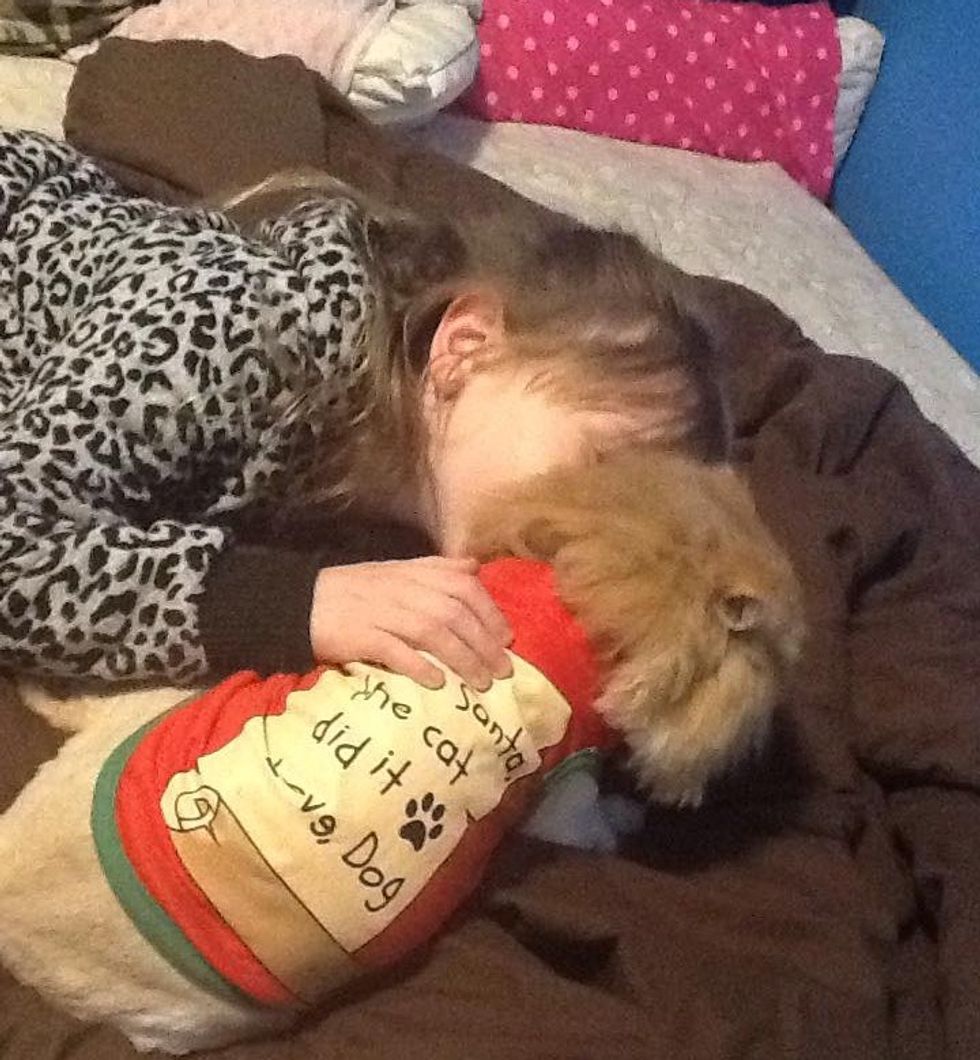 She is gentle and caring to his needs. Brooklyn feeds him, pets him and curls up next to him at night.