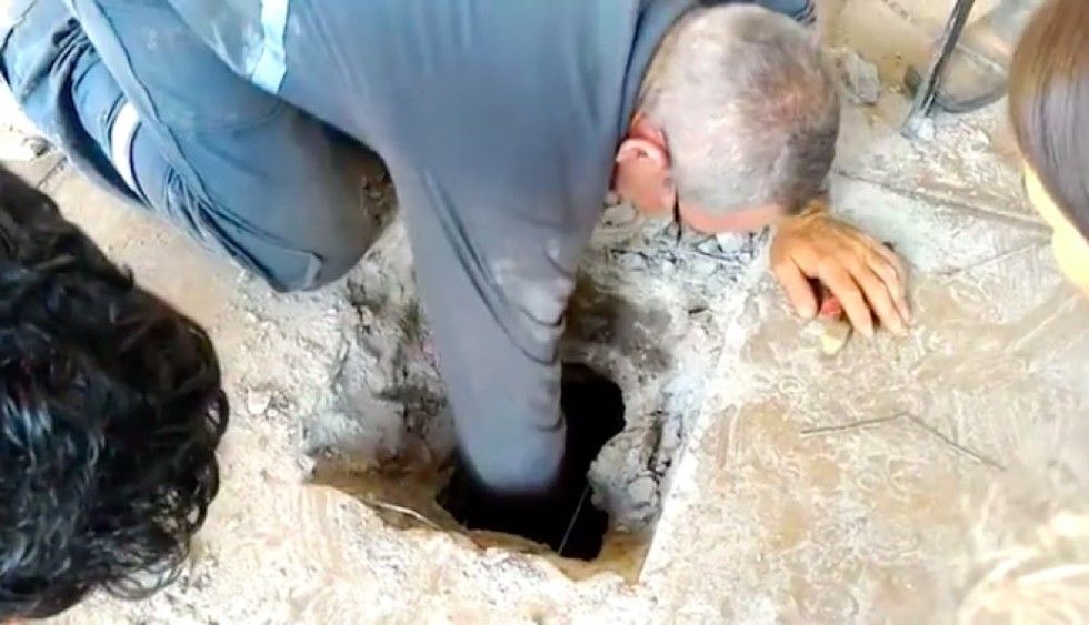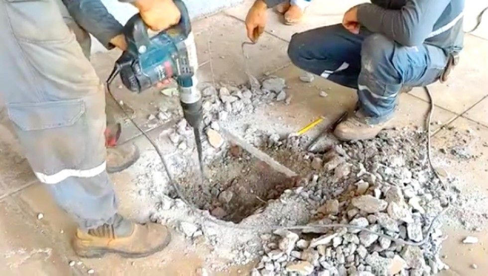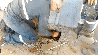 Workers from a utility company also came to their aid after learning about the situation. They used a jackhammer to carefully tear up the concrete floor, one piece at a time.