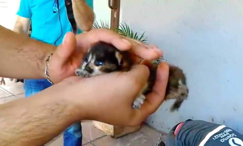 Four tiny kittens were pulled to safety one by one by the rescuers.