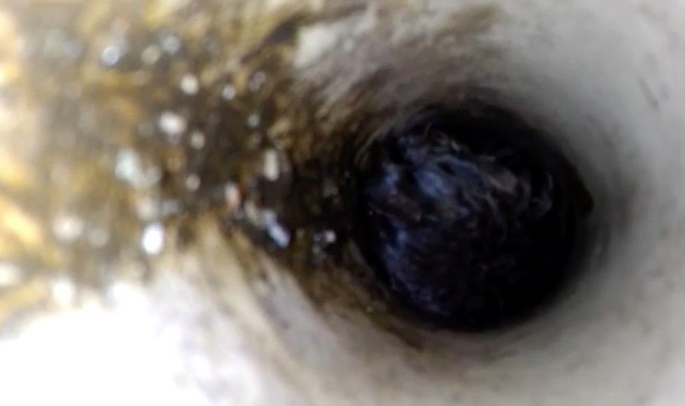 They believe that the little kittens fell from the roof of the building into the drainage pipe.