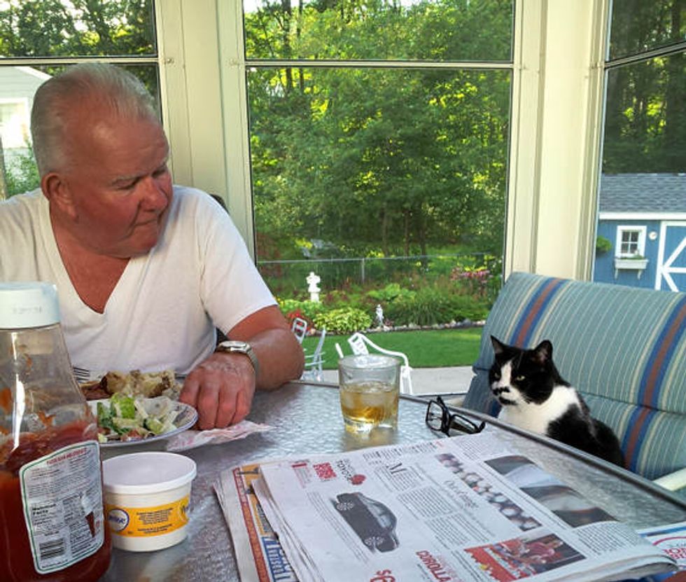 When his granddaughter left for college, the old man and his cat really bonded. "Now they're inseparable and she tries to sit next to him at dinner."