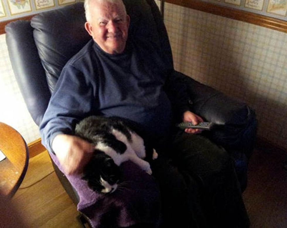 "He definitely ended up loving that cat more than he planned and the two of them sit in his leather chair at night and watch the news."