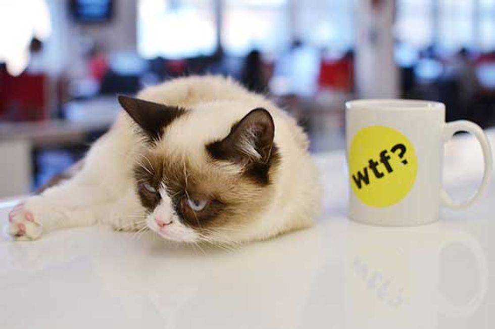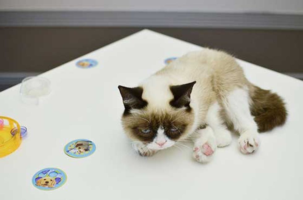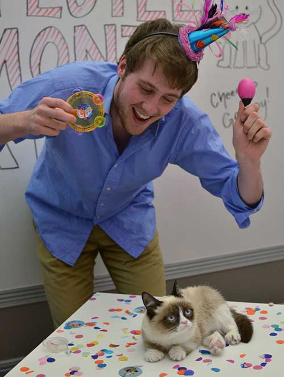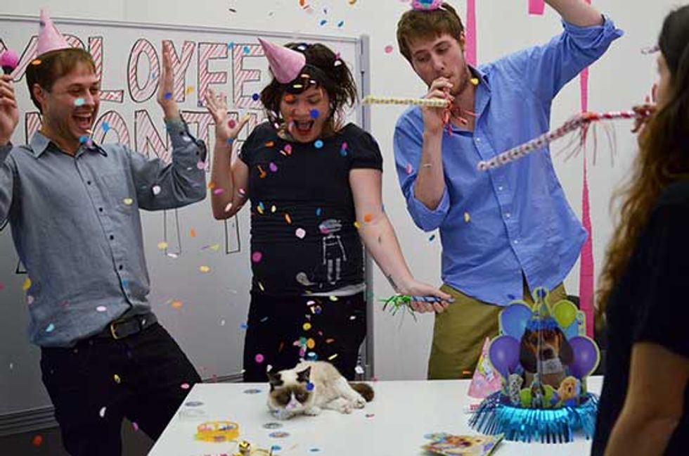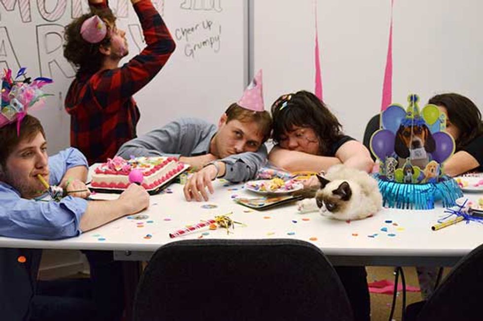 Buzzfeed hired Grumpy Cat as an editor and then they had an Employee Of The Month party for her, but she wasn’t really into it.