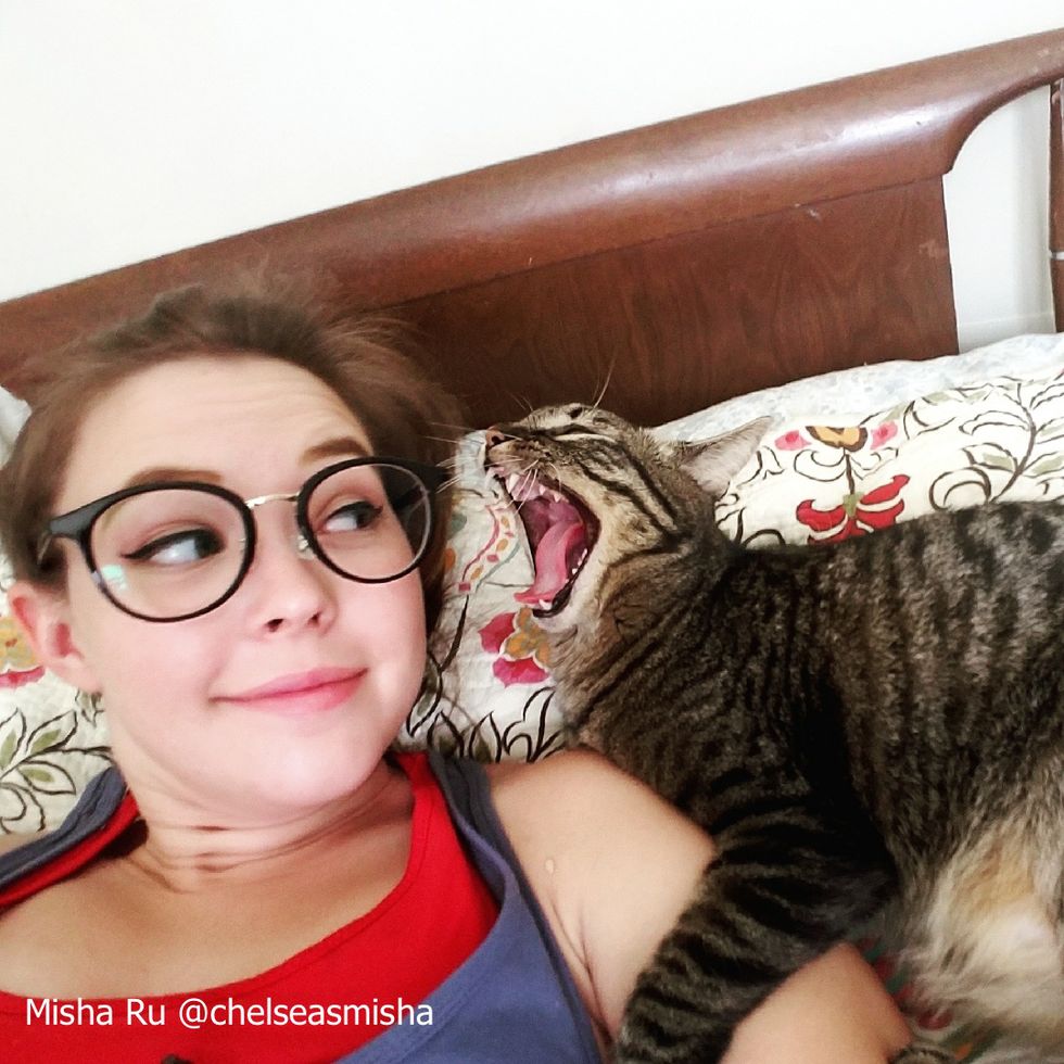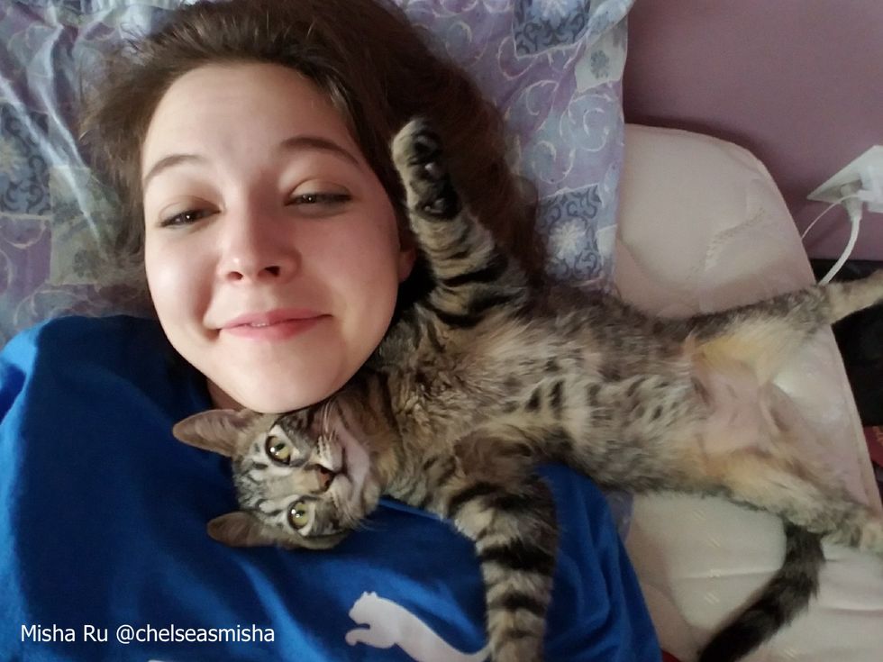 "She loves Misha dearly and with good reason he's a fantastic cat. Misha is almost one year old and is equal parts affectionate playful and mischievous," Brett told Love Meow.
