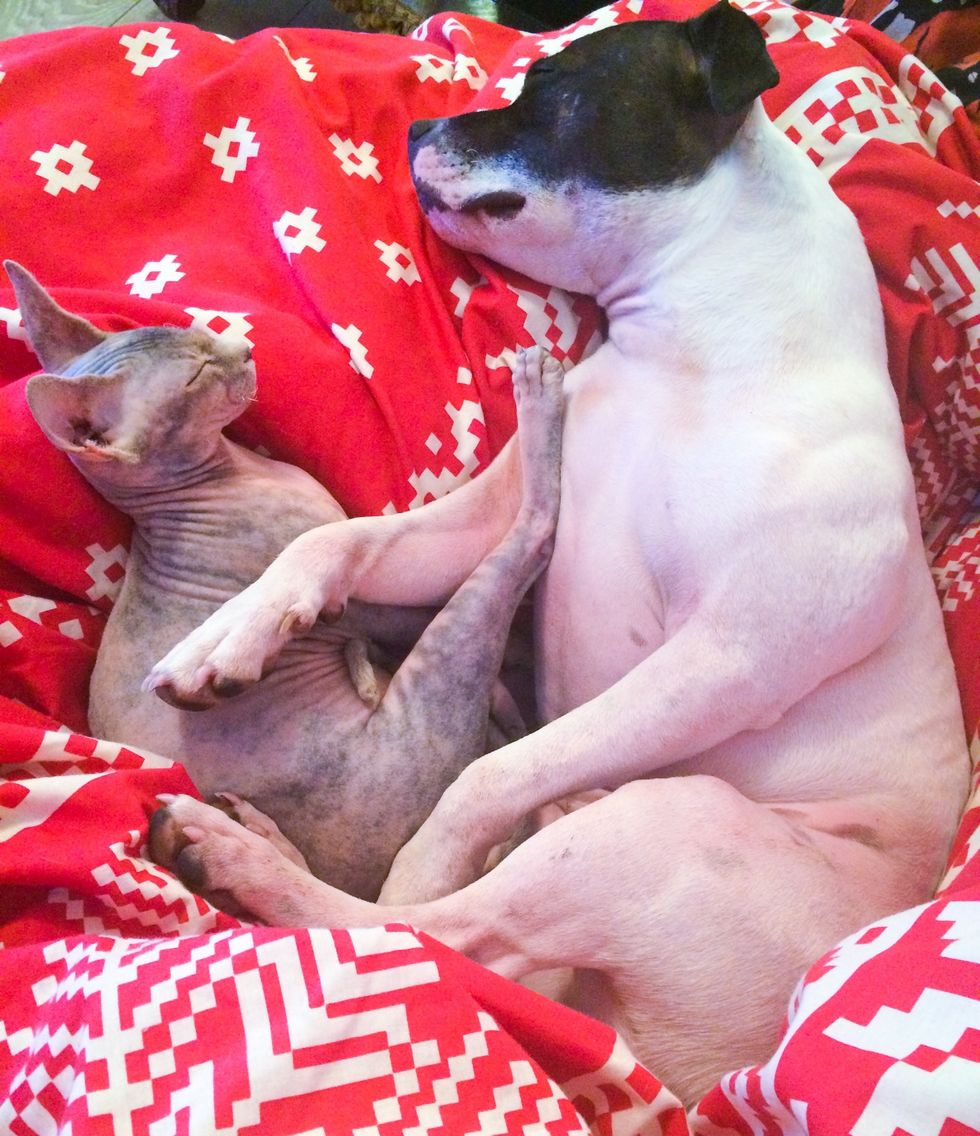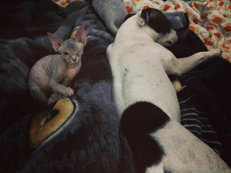 It didn't take long until the two buddies started cuddling like two peas in a pod.