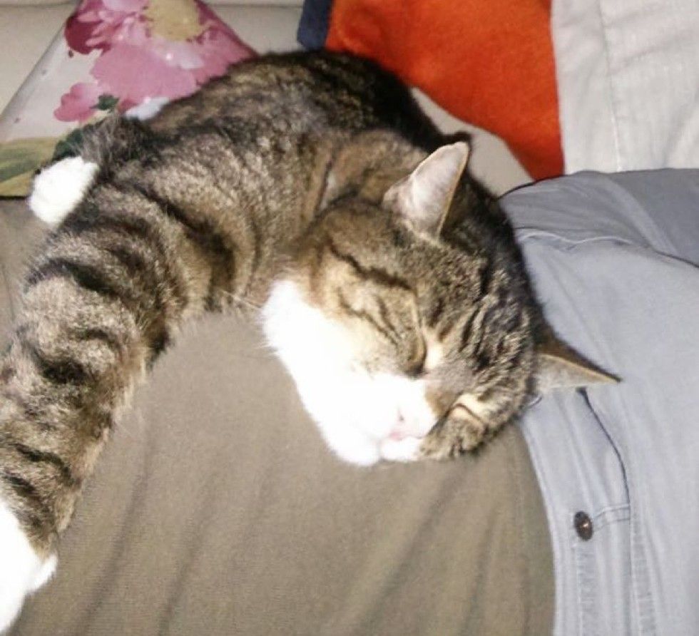 "We have this ritual where whenever I lie down on a couch he will instantly plop down on my belly and cuddle or take a nap," searingsky told Love Meow.