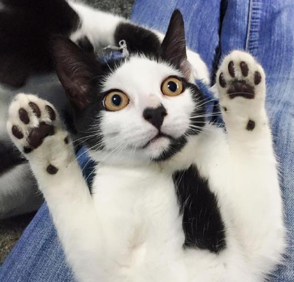 A tiny kitten with a heart shaped nose was found frightened and didn't want to be touched but now he can't get enough of love!