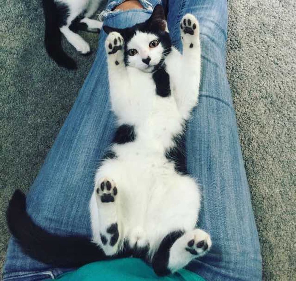 It's hard to believe Pharaoh is the same frightened kitten who didn't want to be touched, now he loves nothing more than spending time with his human friends and snuggling with them in their lap.