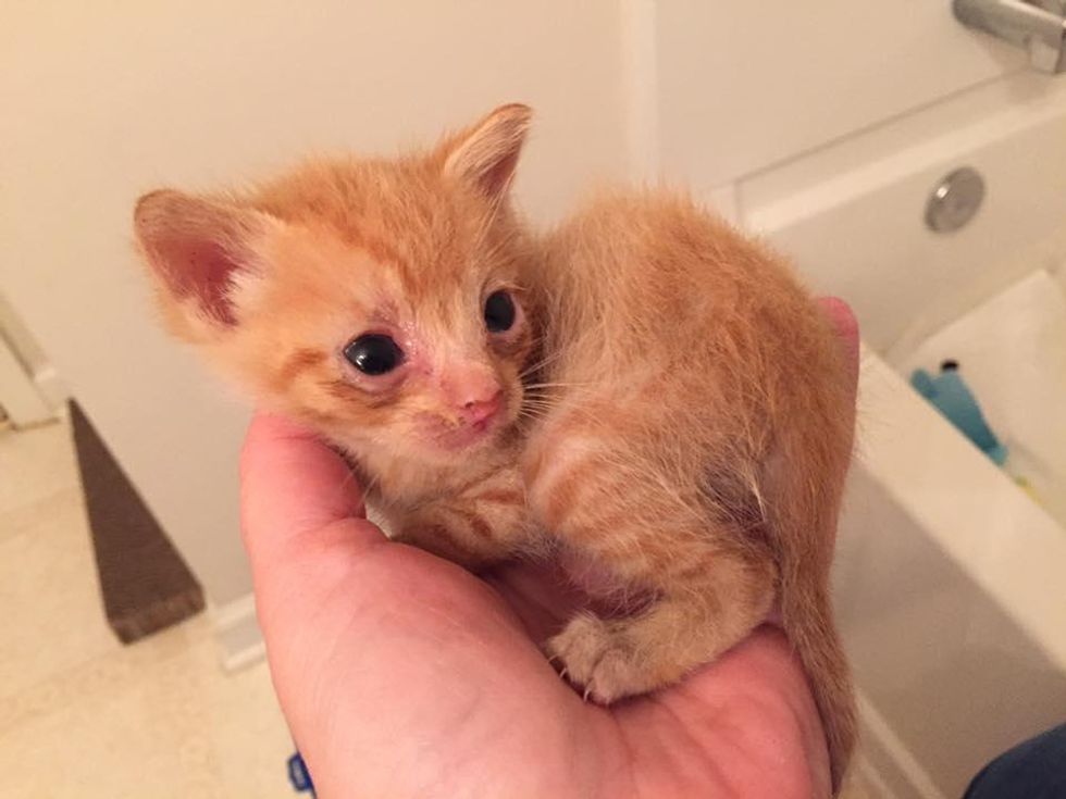 Flame was taken into a foster home soon after he arrived in the shelter. The kitten lost his own mother and was too young to survive on his own.