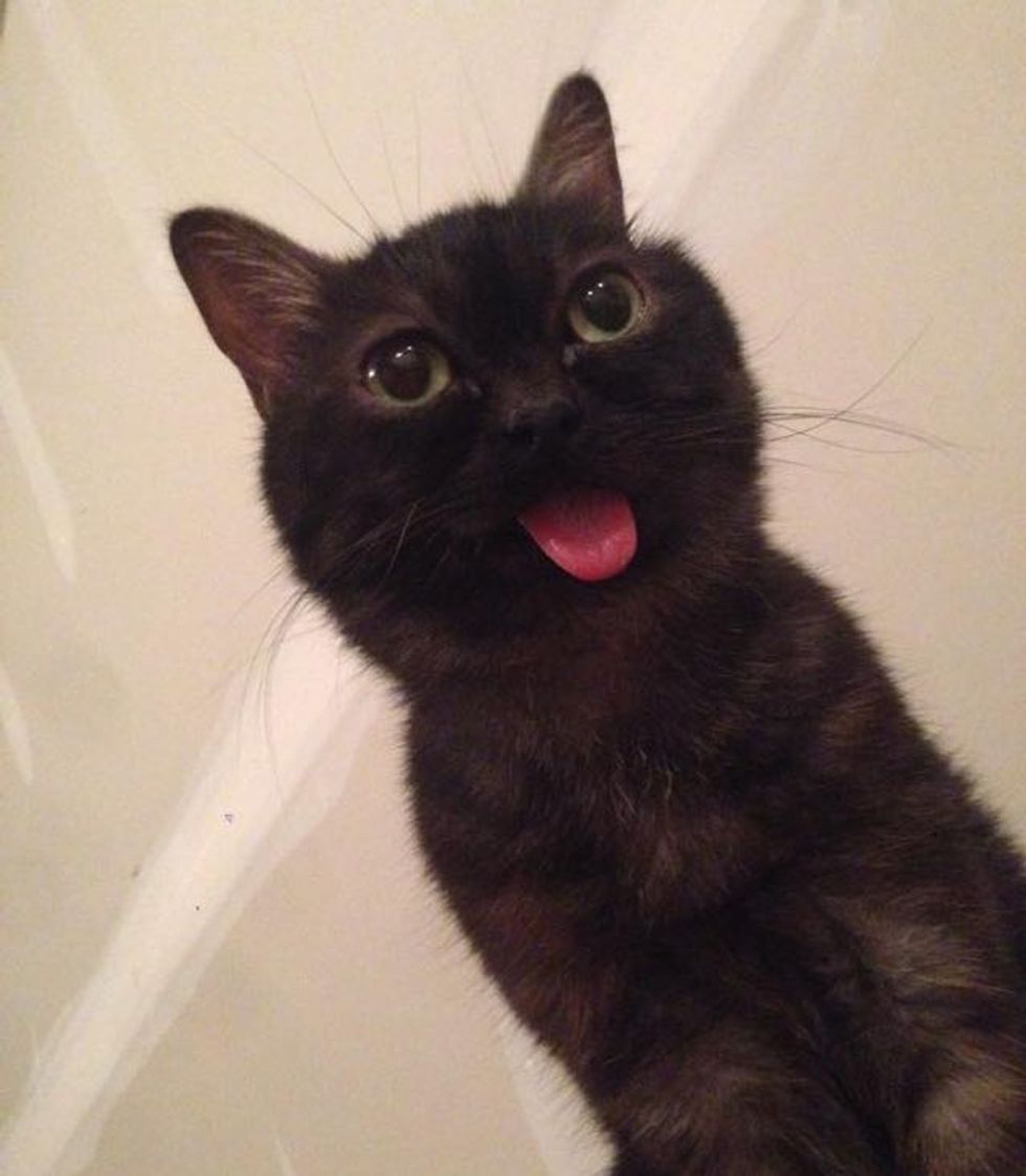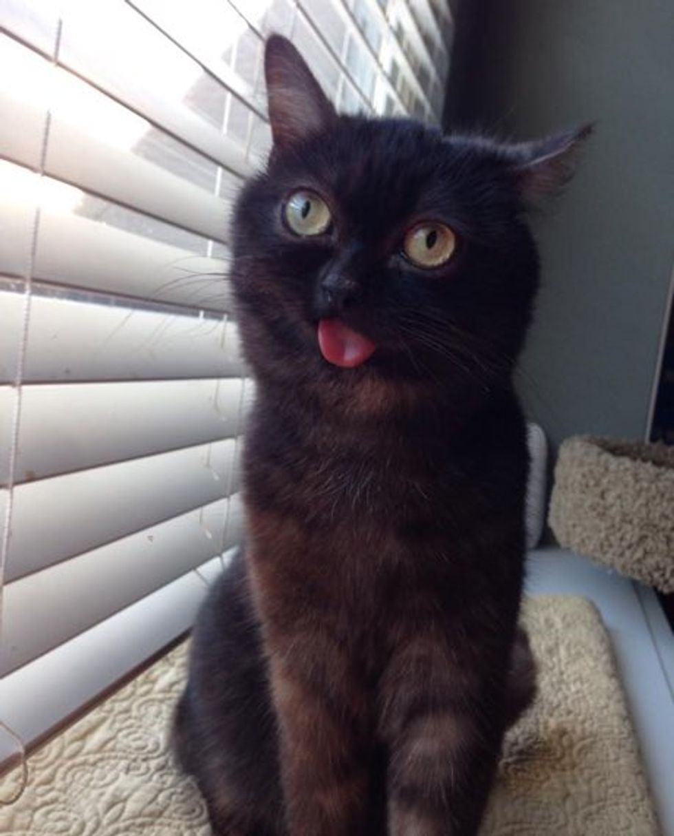 This adorable rescue kitty is very special. He's always happy and his tongue always sticks out. Meet Mr. Magoo the cat!