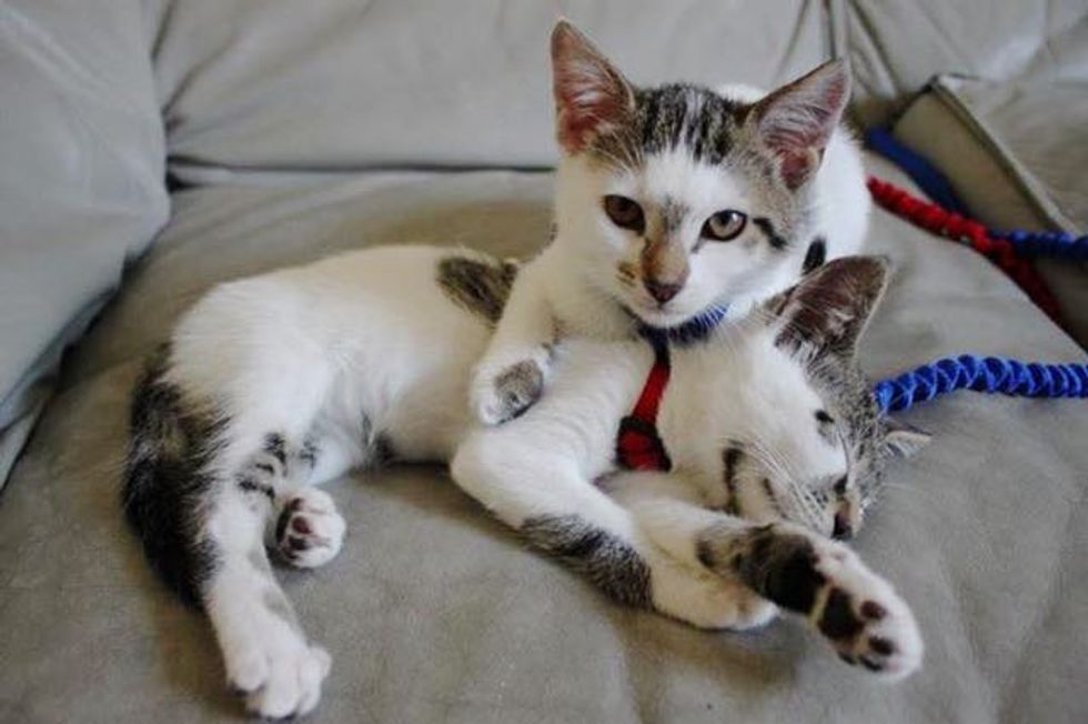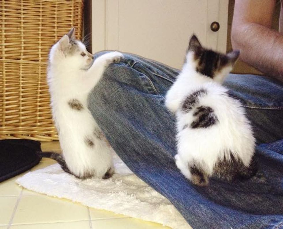 Malia M. shares the story with Love Meow: "Bo and Marlo were found wrapped in a blanket on the side of a busy highway. Their rescuer saw the blanket moving on the side of the road and pulled over to find two small kittens who had either been tossed from a car or abandoned on the side of the highway, wrapped tightly in a blanket. She rushed home with the kittens, cleaned them up and warmed them, cared for and fed them, and started looking for a home amongst friends."