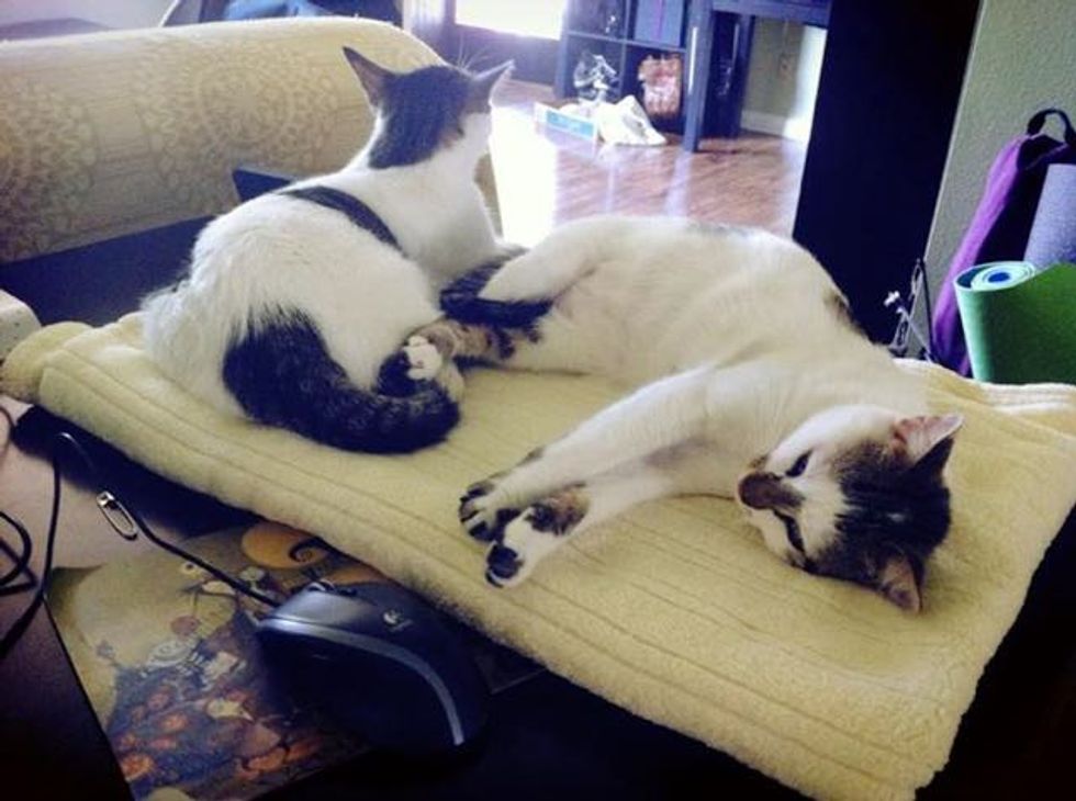 "They don't often go too far away from me. I had to set up a 'cat bed' area next to my computer while I worked because they wanted to be close to me."
