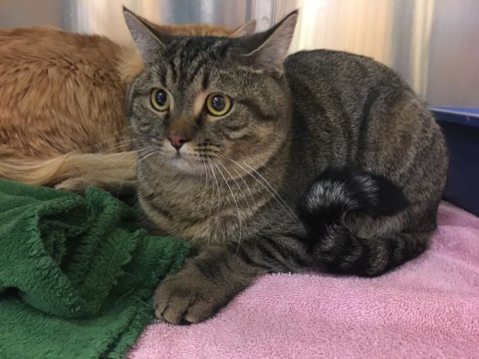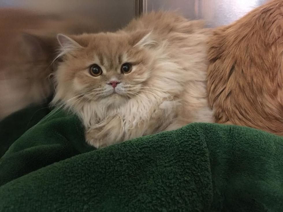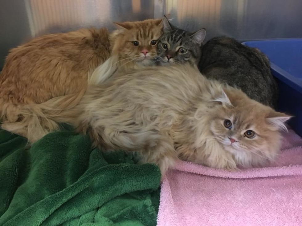 Three cats were found abandoned outside the store earlier this week. The local police were contacted and they came to collect the shy kitties.