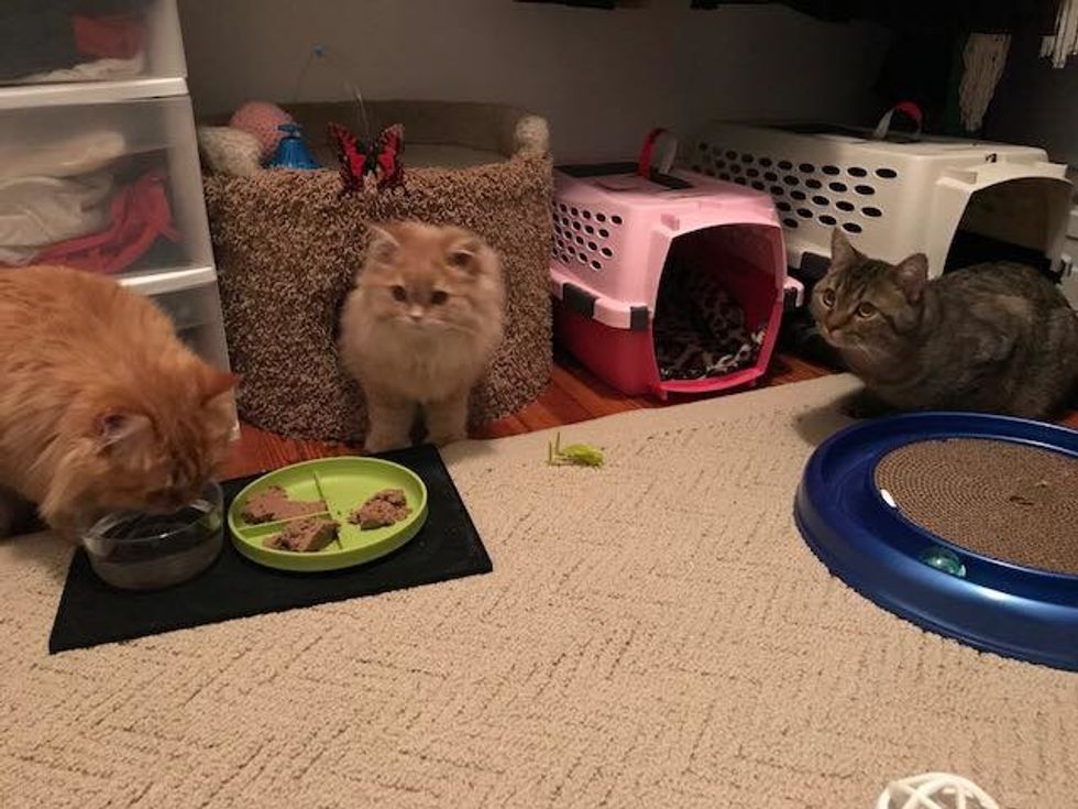 The kitties just moved in with their foster family last night. In no time, they came out of their shells and ran around the place like they owned it.