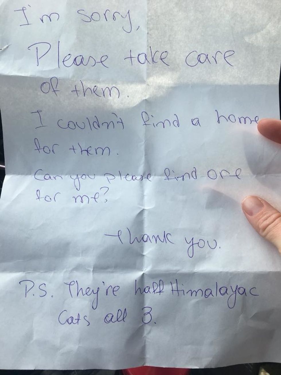 "I'm sorry, Please take care of them. I couldn't find a home for them. Can you please find one for me? Thank you."