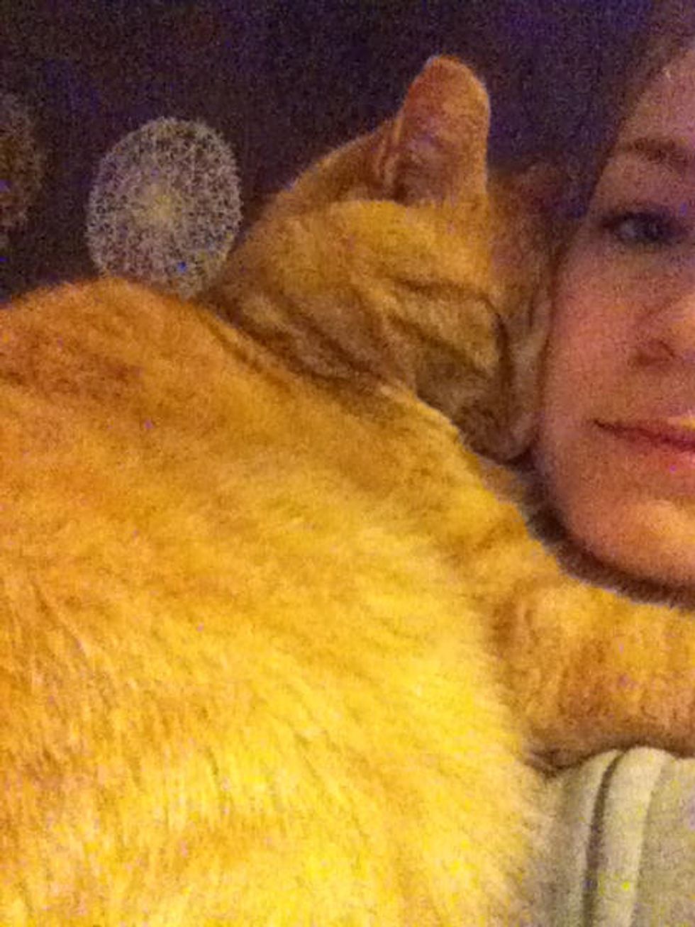 "So I pick him up and he grabs me around the neck and just strokes his face against mine whilst purring for like 15 minutes. It's awesome."