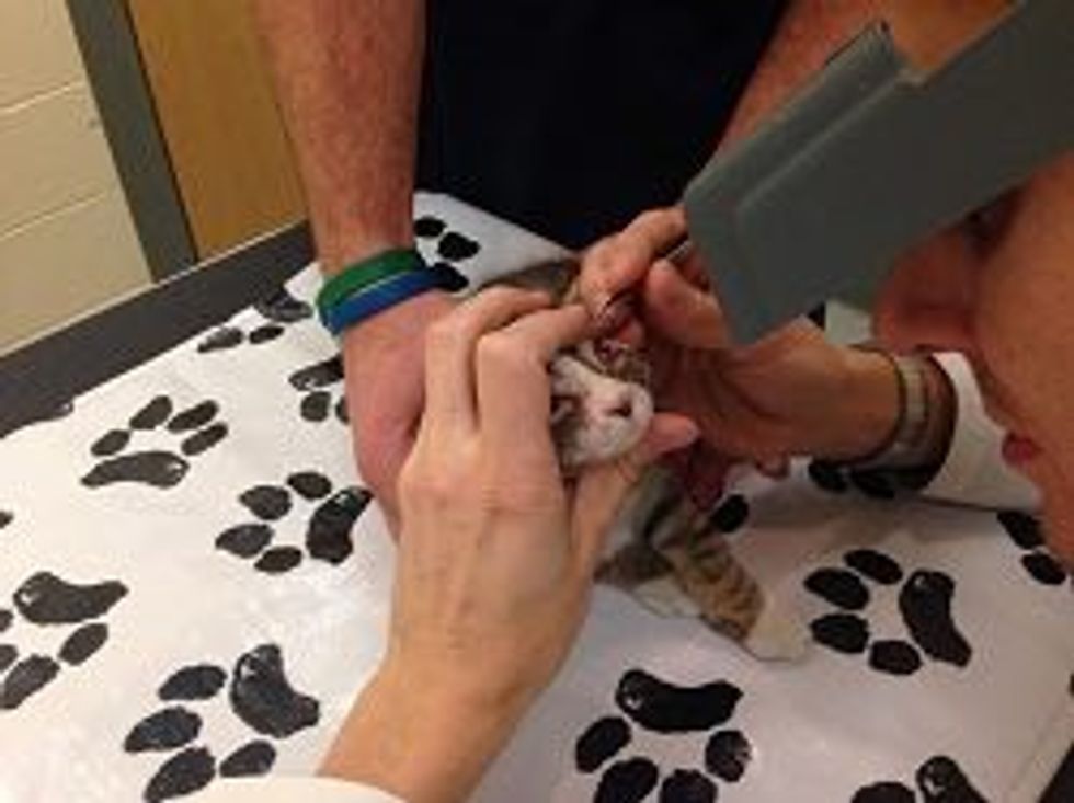 This brave little kitten was born with a condition called Agenesis which makes it impossible for him to blink. Without the surgery, constant irritation brought on by dry and itchy eyes could lead to ulceration and, eventually, complete blindness.
