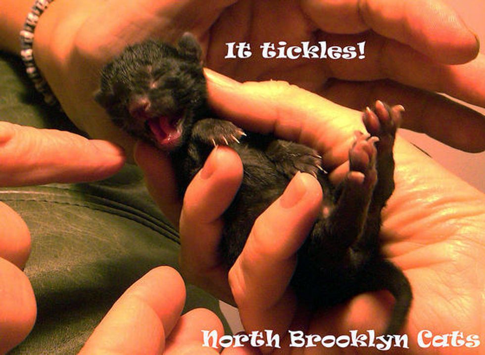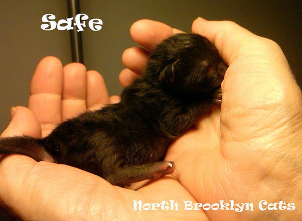 A tiny bitty orphan kitten just hours old was rescued by North Brooklyn Cats.