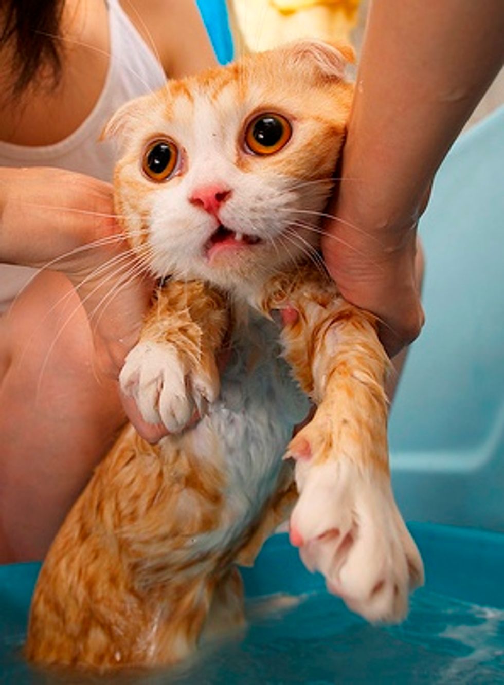 My cats never fail to kick and scratch when I give them a bath. They simply hate water. The other day I gave Jackie a bath because he had a little litter box mishap. Wiping him down did not work so well, so I had to take him to the bath tub. He immediately knew what was coming and tried to flee. I attempted to comfort him by talking to him with a soothing tone and nuzzled him with my head, but he cried throughout the entire bath and managed to leave a few scars on me.