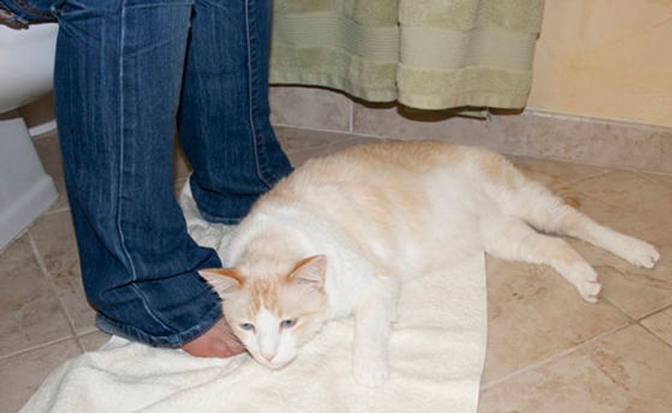 Who says cats aren't affectionate? Kitty can't stand being away from his humans. "I can't even take a bath without him."