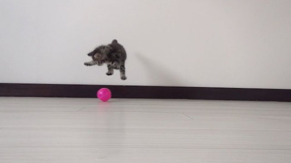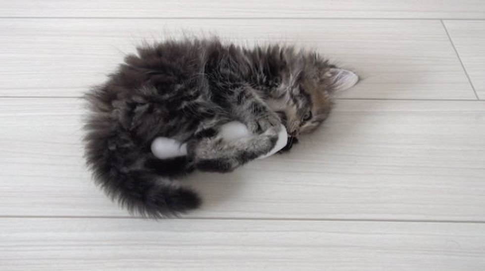 If his human misses a few pins after the first roll, he will help his dad secure a spare by swatting down the pins with his paws! It's totally legal to do that in the feline rules of bowling.
