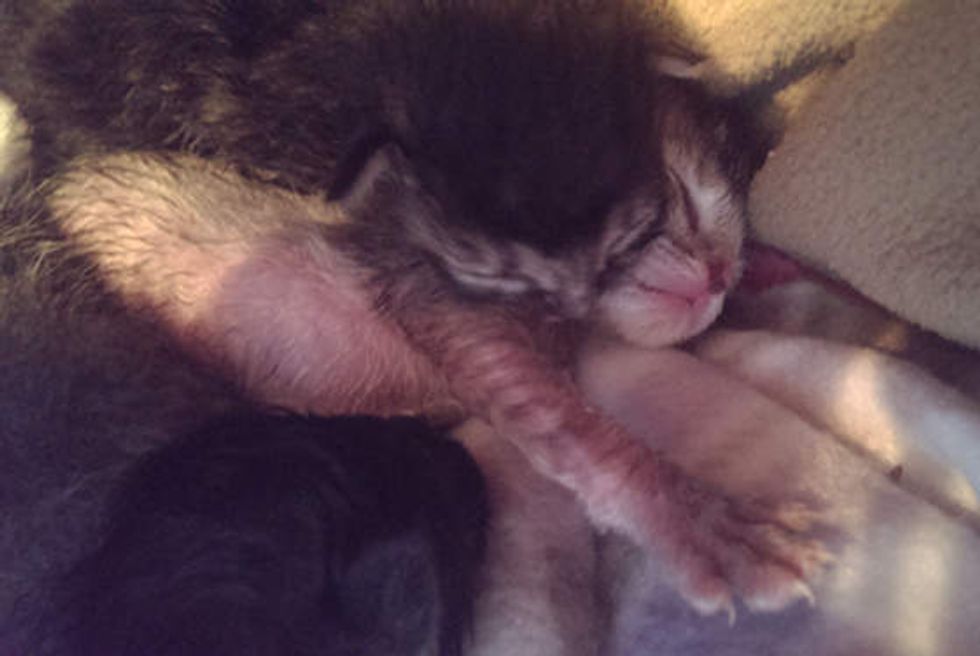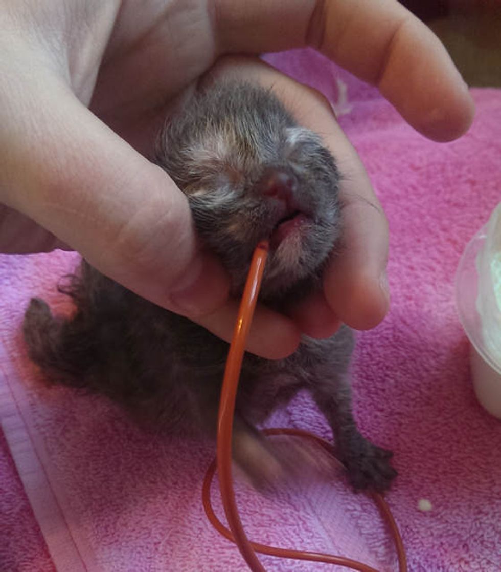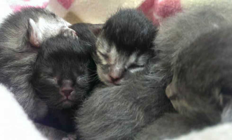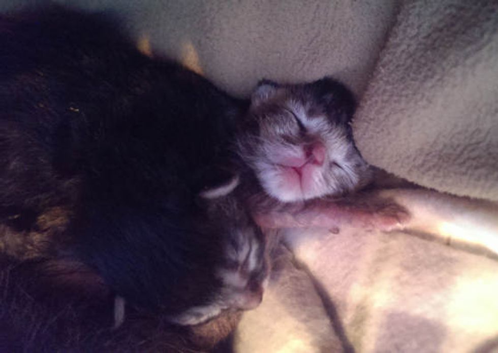 "These guys were born Sunday, January 26th and were orphaned two days later... Unfortunately, the kittens were motherless in the middle of an ice storm that left most roads impassable and all businesses closed. The man caring for them had no experience with orphans and no way to get supplies, so he called for help for hours before finally getting in touch with my shelter. A few staff had braved the weather to care for the shelter animals and man the phones. We knew there would be a lot of calls about missing pets and animals with no shelter. He was so relieved that someone finally answered the phone and offered to help that he drove an hour and a half to get the two day old babies to us. My roommate and I have been caring for them ever since. These photos are them at five days old during a feeding." (imgur)