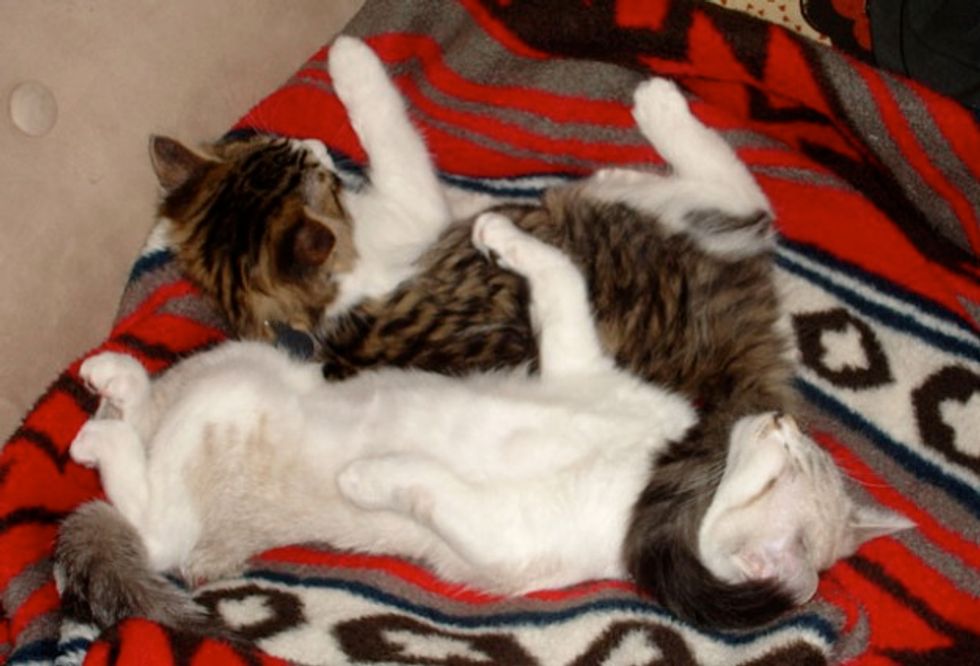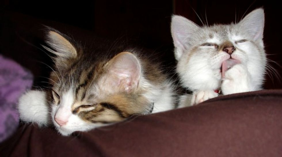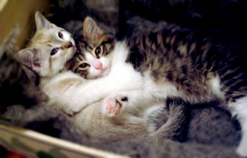 Edgar and Agatha are tiny but powerful purr machines. The two kitties are inseparable like two peas in a pod. They can't stand to be out of eye-shot of each other.