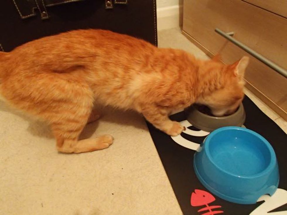 "Georgie's home at last!!! The weather's not as hot as Cyprus, but the cuddles and Whiskas are on demand. So happy."