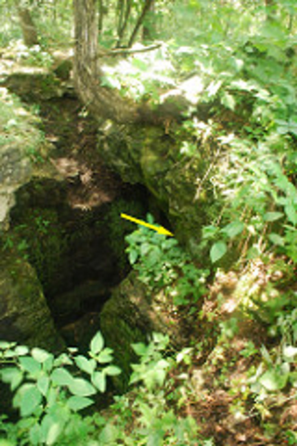 When J.M. did not find anything from the tree, he started thinking it might be something else. "Then I looked down and saw her sitting on a little rocky ledge," said J.M.. You can see from the picture where the arrow points. Little Ivy was trapped, unable to move or free herself from the ledge. J.M. thought he had to do something about it. "I climbed down about 15 feet into that crevasse and then up a few feet to be able to reach her."