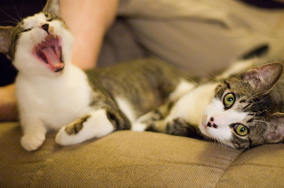 Jack and Lily grew up very fast and are extremely mischievous. They always try to get into something that they shouldn't. Jack and Lily are inseparable. They love napping and cuddling with each other. They also love to make mischief and wreak havoc in the house together whether it is to pull down all the toilet paper in the bathroom or break whatever they can find in the kitchen. "My boss was telling me how she can just leave her knitting on the couch around her cat, Mine would be in a thousand little pieces if I did that." But when they are asleep, it becomes the most peaceful and soothing moment.